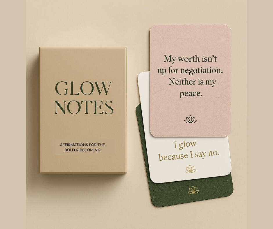 Affirmations for the Bold & Becoming.Your worth isn’t up for negotiation...and neither are your words. Glow Notes is a luxe set of affirmation cards designed to keep you grounded, confident, and in your glow.What’s Inside